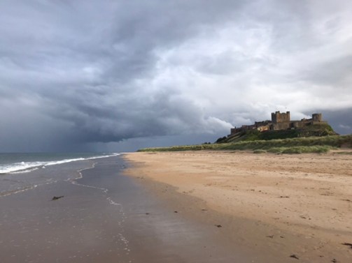 Rested, the group of pilgrims gathers on the Saturday morning beneath the vast presence of Bamburgh Castle. The castle was restored to its present glory by the 19th century munitions entrepreneur and inventor William Armstrong. Lord Armstrong bought it from the Crewe trustees in 1894 for the sum of £60,000 – a fortune then. He went on to spend a further one million pounds creating an iconic English castle which would be used as a convalescent home for ‘well educated people who had fallen on hard times’.