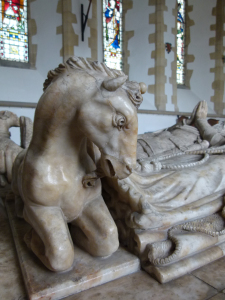 The church was my first stop. You can learn a lot about a place from its parish church. While beautifully restored and full of history, it is not my cup of tea, being a big, echoing place that lacks the intimacy of many of the little country churches I love. There were some artistic gems there though, including the magnificent alabaster tomb of Lord William and his wife occupying most of the choir. Under that lady’s feet is…